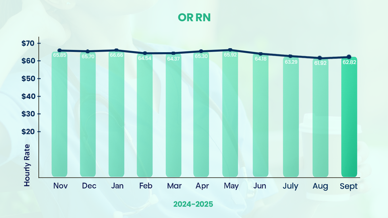 Trend: OR RN salaries declined steadily through August. September data shows an upward trend, showing a promising ending to the year
